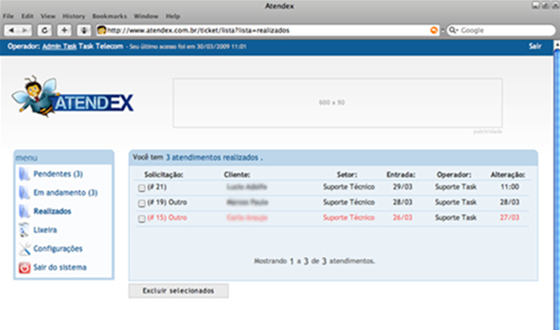 5 - O operador assume a solicitação e responde ao cliente. Se o atendimento demorar mais que o limite estabelecido, alarmes são enviados aos operadores. Todos os atendimentos ficam registrados no Atendex.